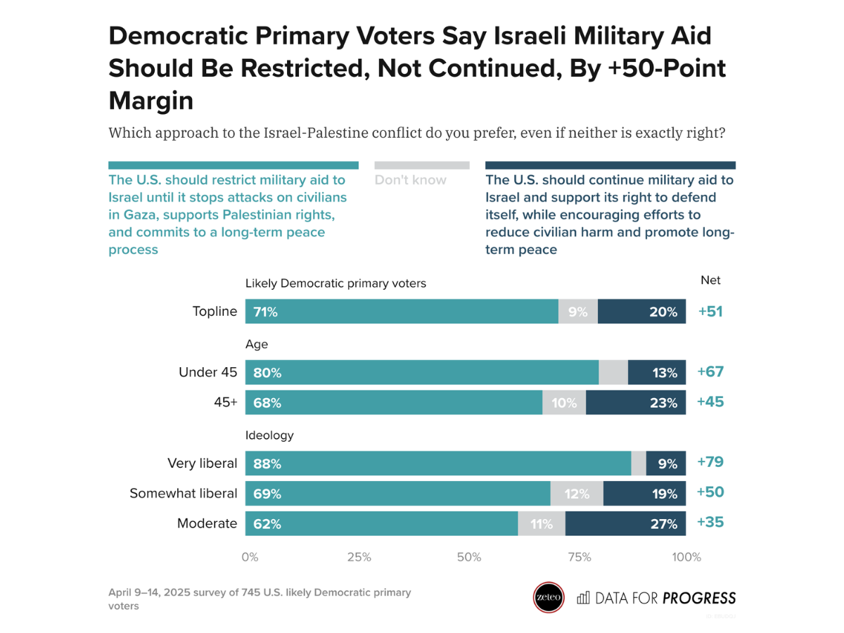 71% of likely Democratic primary voters want the U.S. to restrict military aid to israel